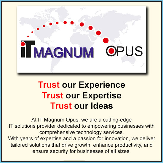 We are IT Magnum Opus, a trusted provider of IT Solutions India, committed to delivering innovative and reliable technology services that empower businesses to succeed in today’s fast-paced digital world. With a team of experienced professionals and a passion for excellence, we specialize in crafting customized IT Solutions India across website design, digital marketing, IT infrastructure, and data security. Our holistic approach ensures that businesses of all sizes have access to the tools and support they need to streamline operations, enhance security, and drive growth.